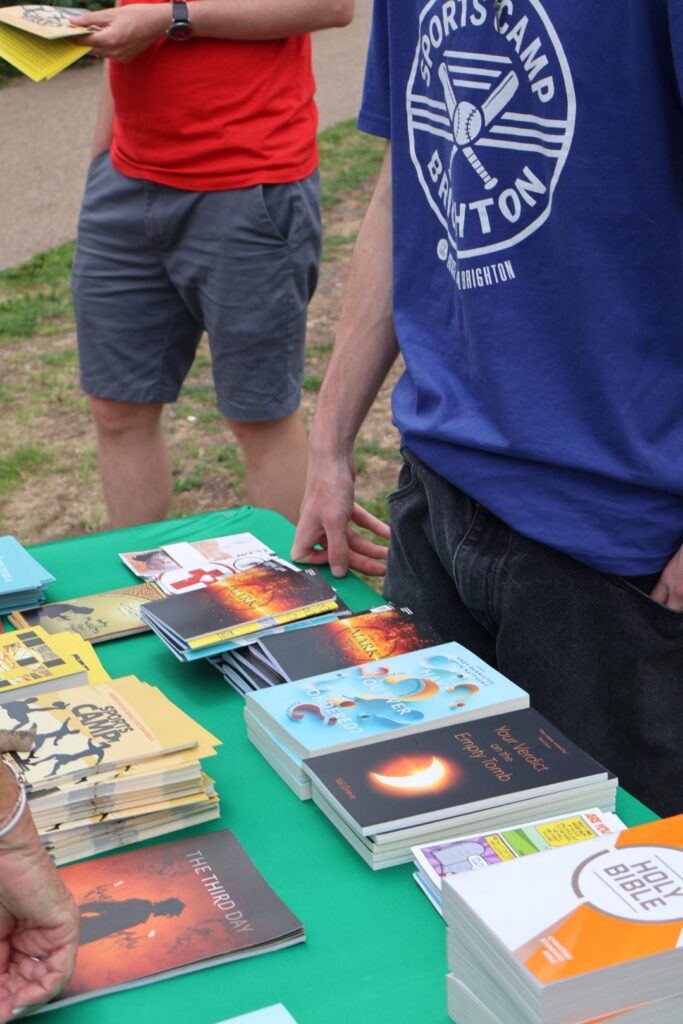 As we sat around at the crossroads of paths through the middle of the park, we also set up a table with Bibles and booklets available for passers by.